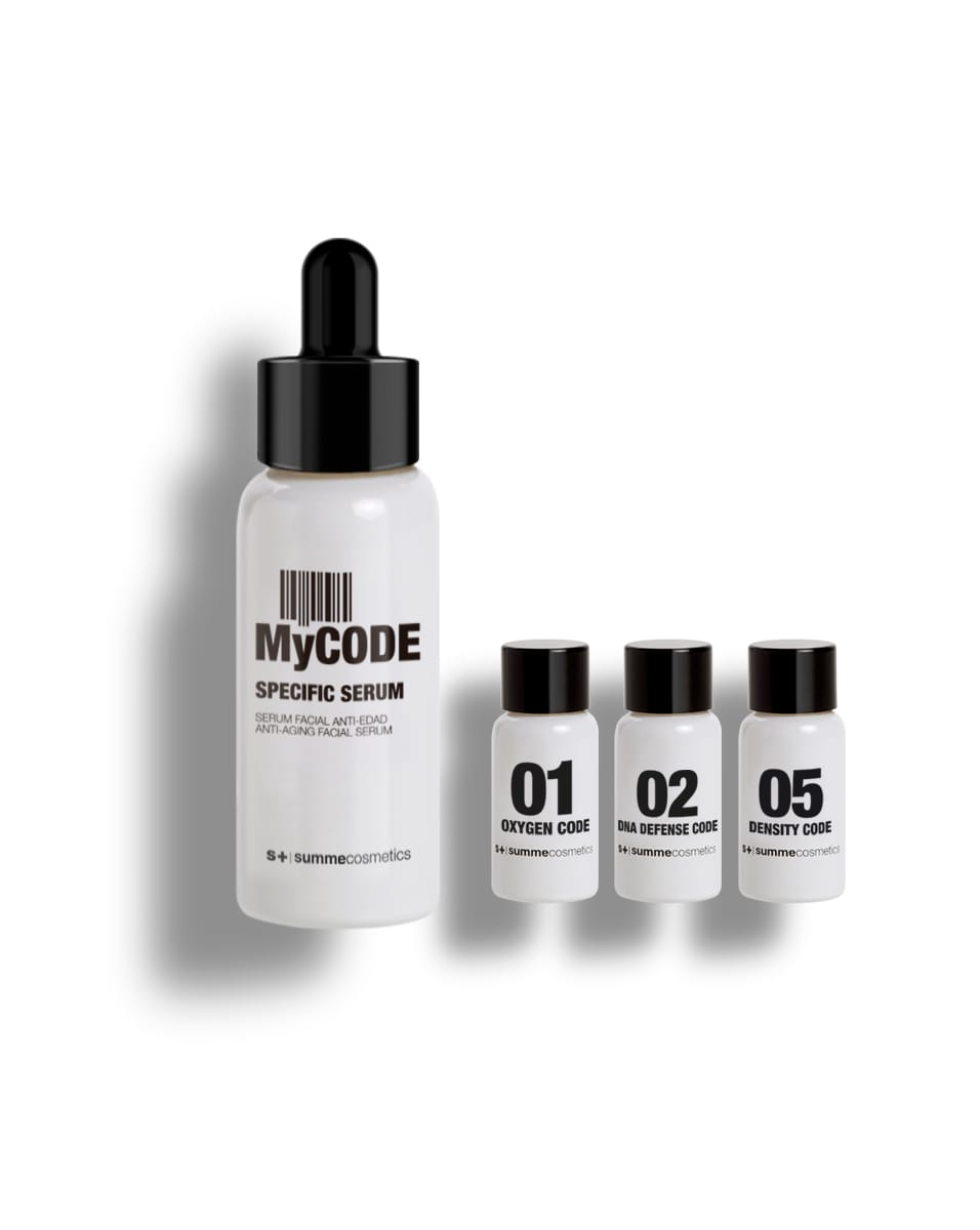 Antiverouderingsserum voor het gezicht, de hals en het decolleté dat is ontworpen om een behandelingsoplossing te bieden die de effecten van de tijd bestrijdt, op een volledig gepersonaliseerde manier, volgens de kenmerken en behoeften van elke klant. Het bestaat uit een basisserum dat wordt verrijkt met drie gezichtsconcentraten (codes), dezelfde of verschillende, die een extra hoeveelheid actieve ingrediënten toevoegen afhankelijk van de onevenwichtigheden van elke huid.